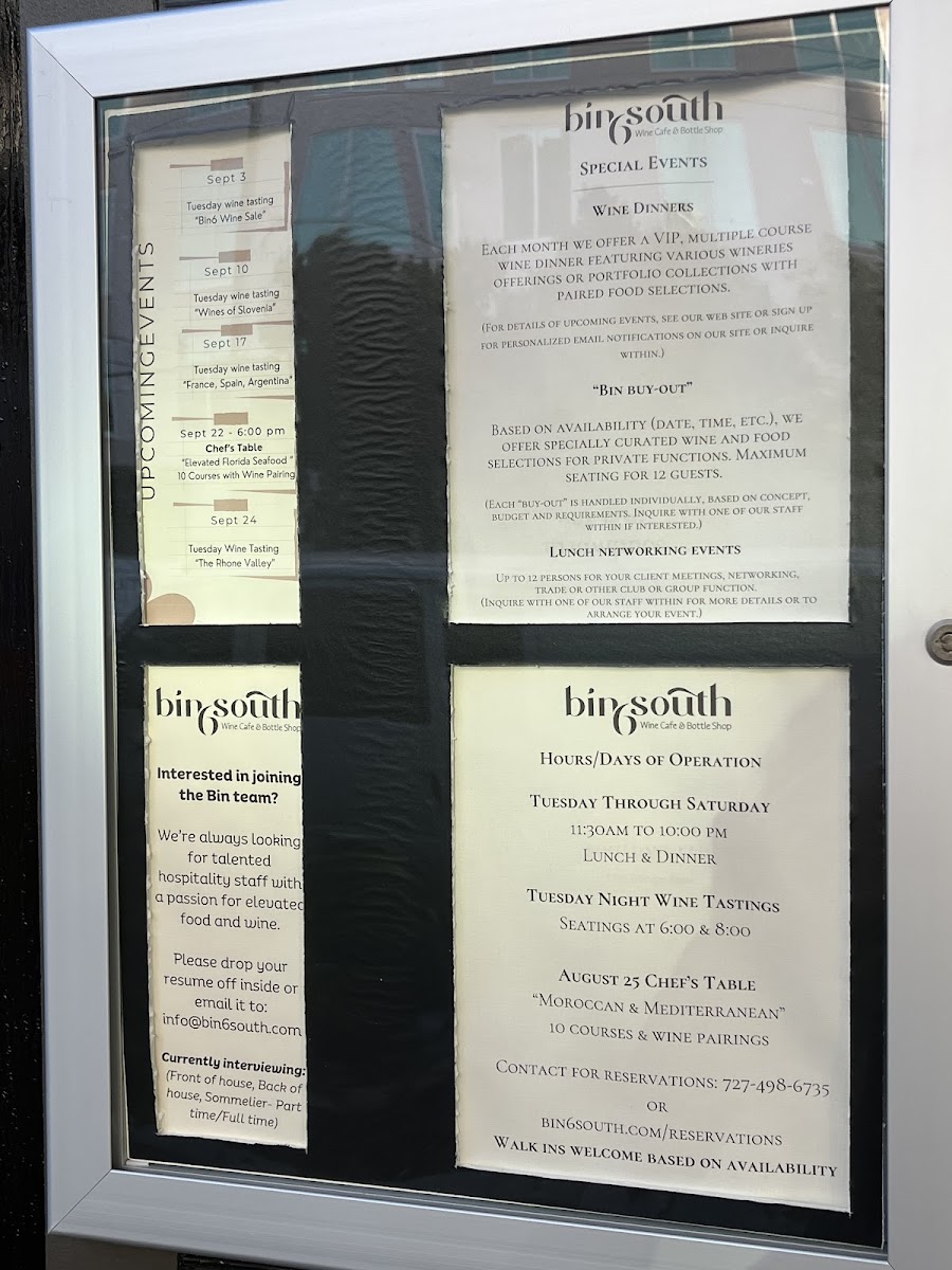 Welcome to bin6south, an intimate 12-seat gem located in St. Petersburg, FL, where culinary wizardry meets a warm, inviting atmosphere. Chef Kelsey leads a dining experience that feels both personal and transformative. The menu showcases a dynamic array of dishes that rotate frequently, spotlighting seasonal and local ingredients.